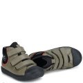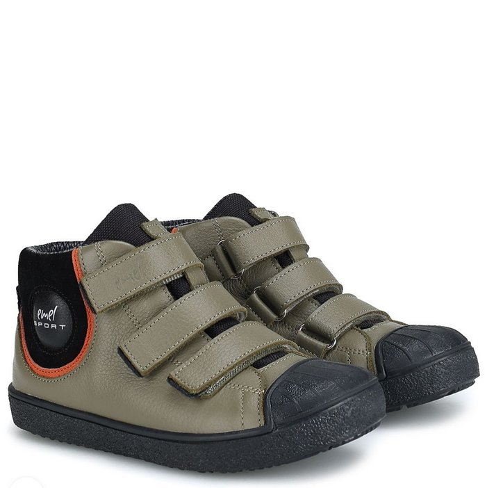 Chłopięce zielone jesienne trampki Emel zapinane na trzy rzepy wykonane zostały z najwyższej jakości skóry naturalnej. Gumowa antypoślizgowa podeszwa została wyposażona w specjalny bieżnik zwiększający przyczepność. Szerokie noski umożliwiają swobodne poruszanie palcami. Buty posiadają zapięcie na rzepy. Podeszwa jest lekka i elastyczna, nie krępuje ruchów, a pełny i sztywny zapiętek zapewnia stabilność. Model ten posiada dodatkowo membranę, dzięki której jest nieprzemakalny. Buty wyposażone zostały w ocieplinę, dzięki czemu doskonale sprawdzą się w chłodniejsze dni.