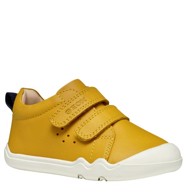 Żółte lekkie wiosenne buty dla dzieci GEOX Steppieup Ochreyellow/Navy zostały wykonane zgodnie z ideą barefoot z najwyższej jakości materiałów. Niezwykle elastyczna podeszwa zapewnia doskonałą amortyzację, a gumowe czubki butów chronią przed otarciami. Buty wyposażone zostały w antywstrząsową, antybakteryjną i oddychającą skórzaną wkładkę.