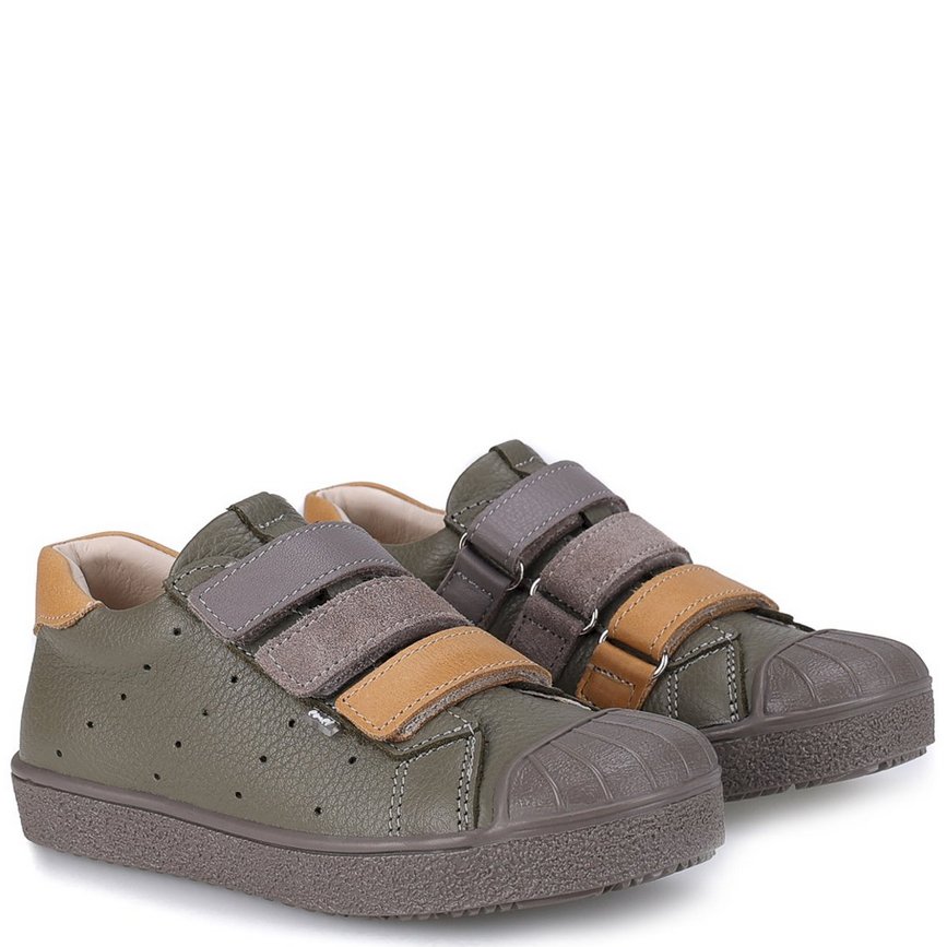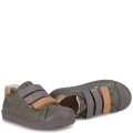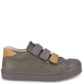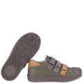 Skórzane zielone trampki Emel z rzepami w kolorach ziemi wykonane zostały z najwyższej jakości skóry naturalnej wolnej od chromu. Antypoślizgowa podeszwa została wyposażona w specjalny bieżnik zwiększający przyczepność. Szerokie noski umożliwiają swobodne poruszanie paluszkami. Podeszwa jest lekka i elastyczna, nie krępuje ruchów, a wzmocniony zapiętek zapewnia stabilność.