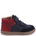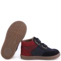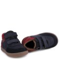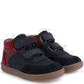 Czerwono-granatowe trzewiki firmy Emel wykonane zostały z najwyższej jakości skóry naturalnej. Gumowa antypoślizgowa podeszwa została wyposażona w specjalny bieżnik zwiększający przyczepność. Szerokie noski umożliwiają swobodne poruszanie palcami. Buty posiadają zapięcie na rzepy. Podeszwa jest lekka i elastyczna, nie krępuje ruchów, a wzmocniony zapiętek zapewnia stabilność. Model ten posiada dodatkowo membranę Te-Por, dzięki której jest nieprzemakalny i oddychający. Buty wyposażone zostały w ocieplinę, dzięki czemu doskonale sprawdzą się w chłodniejsze dni.