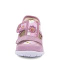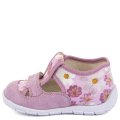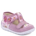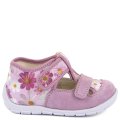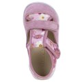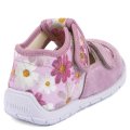 Różowe przewiewne kapcie w w białe i różowe kwiaty zapinane na dwa rzepy wiodącej chorwackiej marki FRODO wyprodukowane bez użycia chromu. Podeszwa jest bardzo elastyczna i nie ogranicza ruchów stopy, a dwa rzepy pozwalają na idealne dopasowanie do stopy dziecka. Buty są lekkie, elastyczne i skonstruowane z myślą o anatomii stopy dziecka. Te buty barefoot ze skórzaną wkładką doskonale sprawdzą się podczas aktywnej zabawy.