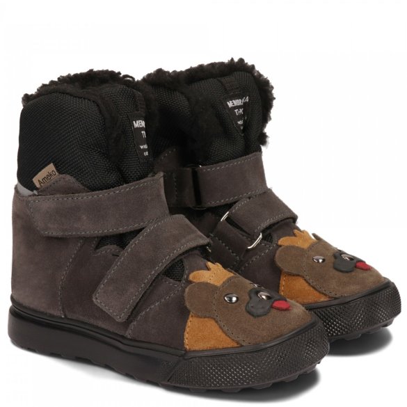 Te wodoodporne buty zimowe ALASKA w kolorze brązowym z wizerunkiem lwa na przodzie buta polskiej firmy Ameko zostały wykonane ręcznie w całości z miękkiej impregnowanej skóry naturalnej. Usztywniony zapiętek i wyprofilowany podpiętek zapewniają właściwe podparcie dla rozwijającej się stopy dziecka. Te zimowe buty z wodoodporną i oddychającą membraną TE-POR doskonale sprawdzą się w zimne i mokre zimowe dni.