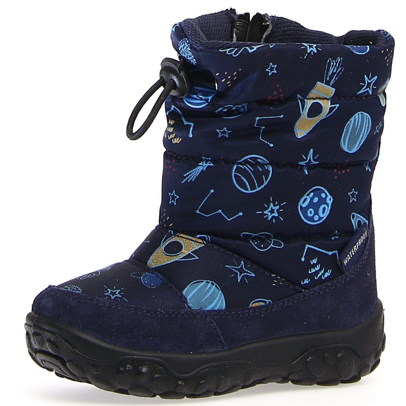Wysokiej jakości śniegowce w kolorze granatowym w planety, rakiety i gwiazdozbiory włoskiej firmy Naturino to idealny wybór dla Twojego dziecka. Ocieplane owczą wełną buty wykonane z wysokiej jakości materiałów wyposażone zostały w membranę RAINSTEP, które zapobiega przedostawaniu się wody do środka buta. Wygodne zapięcie ściągacz ułatwia dopasowanie buta do stopy. Miękkie, elastyczne i antypoślizgowe podeszwy gwarantują wygodę i bezpieczeństwo. „Efekt piasku” to patent wykorzystywany w butach marki Naturino, dzięki niemu wewnętrzna część podeszwy jest modelowana pod ciężarem ciała. W butach NATURINO stopy rosną swobodnie i zdrowo - tak jakby Twoje dziecko chodziło boso po morskim piasku.
