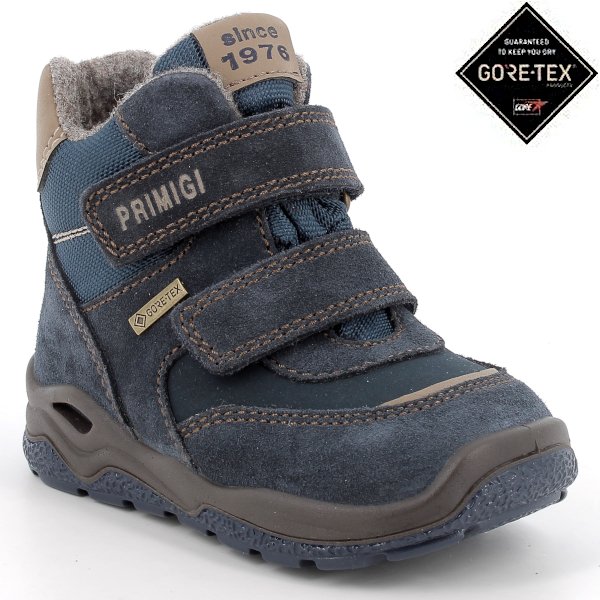 Lekkie i ciepłe buty zimowe dla chłopca marki PRIMIGI w kolorze granatowo-brązowym to synonim innowacyjnej technologii, produkt wygodny i dzięki idealnemu wyważeniu wspierający rozwój małej stopy. Wszystkie buty dziecięce wykonane są z najwyższej jakości materiałów. Od ponad 30 lat byty marki PRIMIGI cieszą się dużą popularnością na świecie. Ocieplina wełniana zapewnia komfort w zimowe dni. Membrana GoreTex gwarantuje nieprzemakalność i sprawia, że stopy pozostaną ciepłe i suche. Buty marki PRIMIGI przeznaczone są dla niestrudzonych odkrywców, którym pozwalają na przeżywanie coraz to nowych przygód bez nieprzyjemnych niespodzianek.
