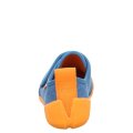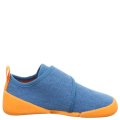 Bardzo lekkie i elastyczne kapcie do szkoły i przedszkola w kolorze niebieskim z pomarańczową podeszwą. wykonane zostało z najwyższej jakości materiałów. Miękka podeszwa nie ogranicza ruchów stopy. Wzmocniony zapiętek zapewnia zdrowy i prawidłowy rozwój stopy dziecka. Zgodnie z ideą barefoot buty są elastyczne i szerokie w palcach.