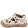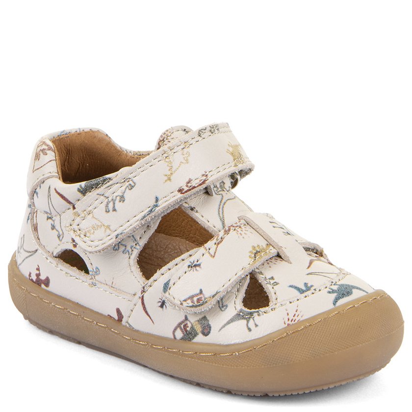 Beżowe skórzane sandały w dinozaury zapinane na dwa rzepy wiodącej chorwackiej marki FRODO wyprodukowane bez użycia chromu. Podeszwa jest bardzo elastyczna i nie ogranicza ruchów stopy, a gumowe czubki chronią przed otarciami. Buty są lekkie, elastyczne i skonstruowane z myślą o anatomii stopy dziecka. Te buty barefoot ze skórzaną wkładką doskonale sprawdzą się podczas aktywnej zabawy.
