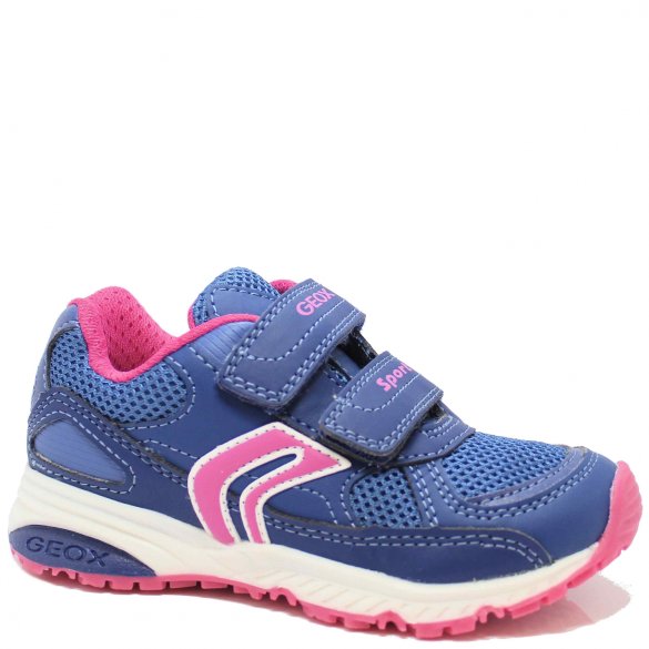 Dziewczęce buty sportowe włoskiego producenta GEOX wykonane są z najwyższej jakości materiałów. Niebieski kolor butów przełamany został różowymi wstawkami. Elastyczna podeszwa zapewnia doskonałą amortyzację, a usztywniony zapiętek stabilizuje piętę. Zapięcie na rzep ułatwia zakładanie butów.