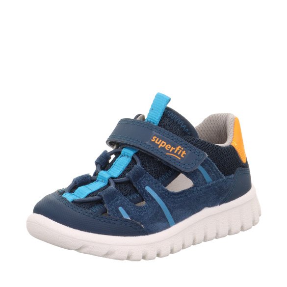 Przewiewne buty sportowe Superfit SPORT7 Mini w kolorze niebieskim i pomarańczowym. Lekkie i elastyczne buty wykonane zostały z najwyższej jakości materiałów. Miękka podeszwa nie ogranicza ruchów stopy. Wzmocniony zapiętek zapewnia zdrowy i prawidłowy rozwój stopy dziecka.
